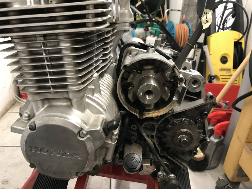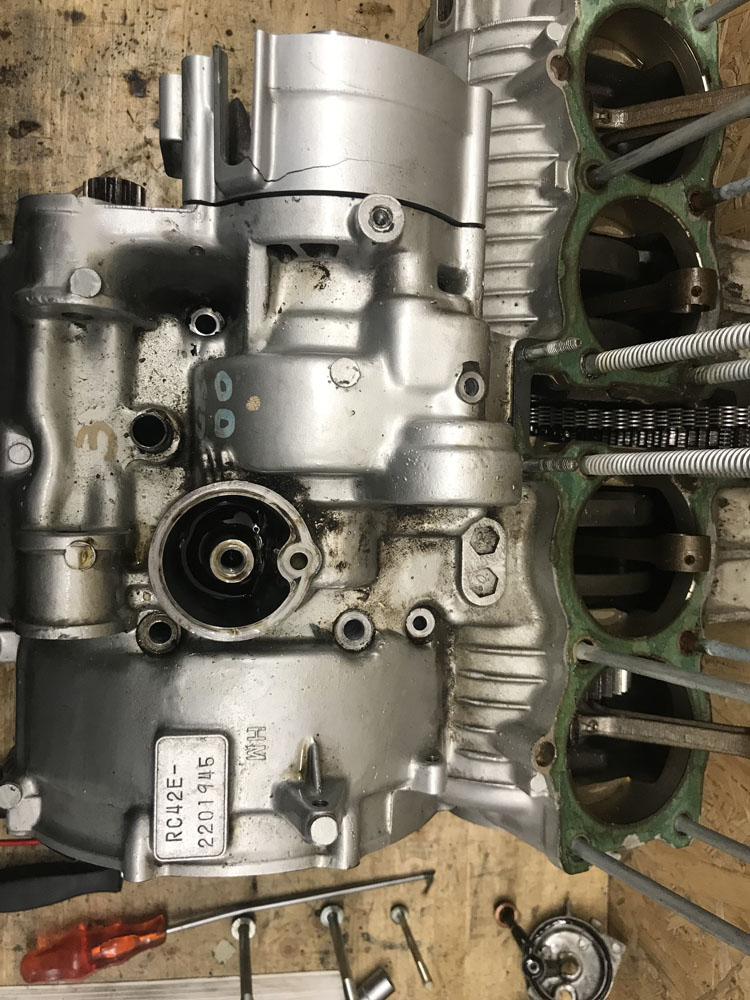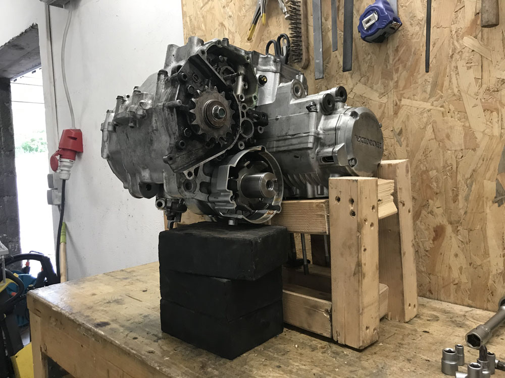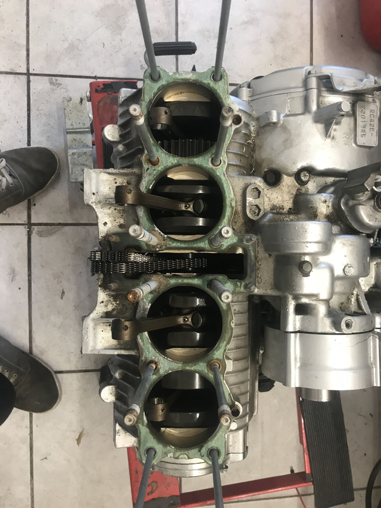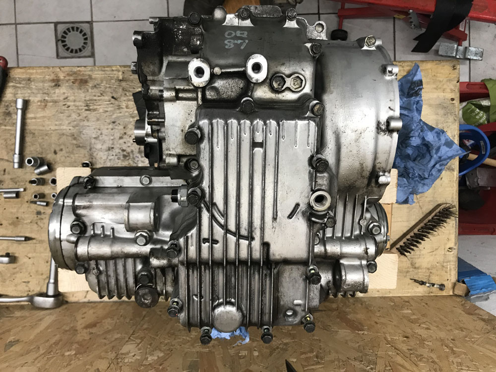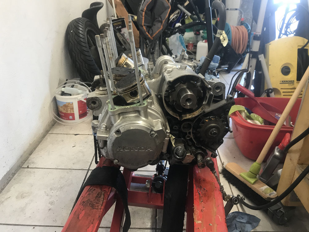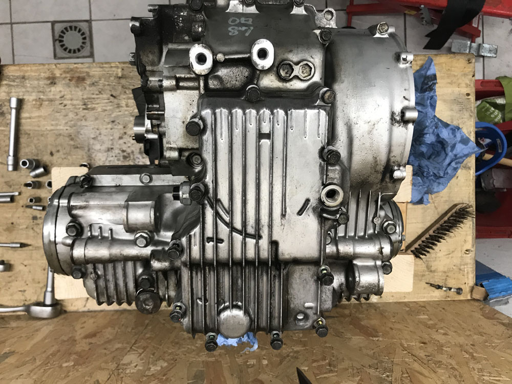 Leitfuedem an Notizen vir den Motoblock vun enger Honda CB 750 vun 1996 auserneen zehuelen. An vun ennen no uewen eng hëlef vir en rem zesummen ze setzen.