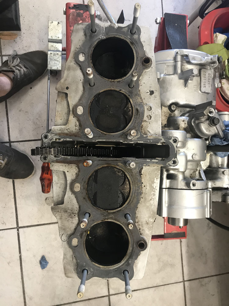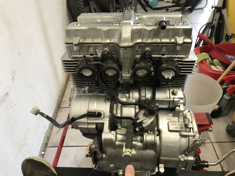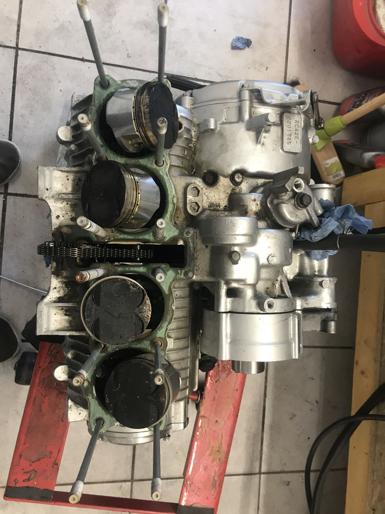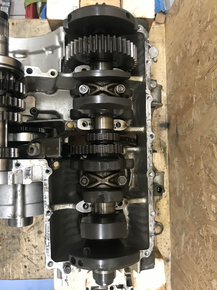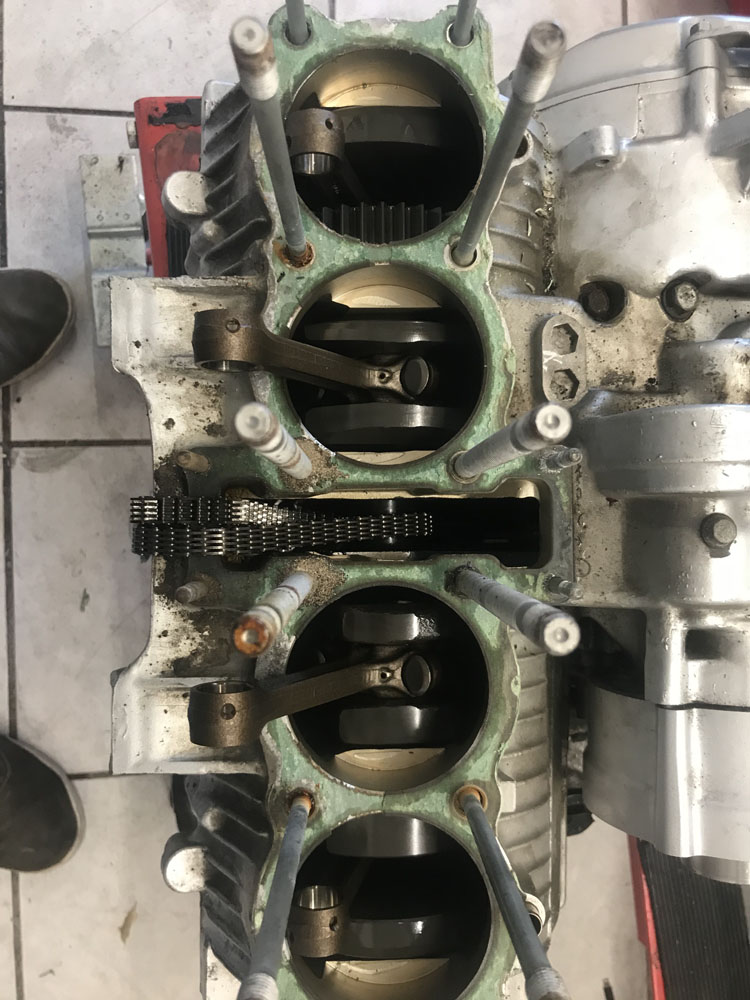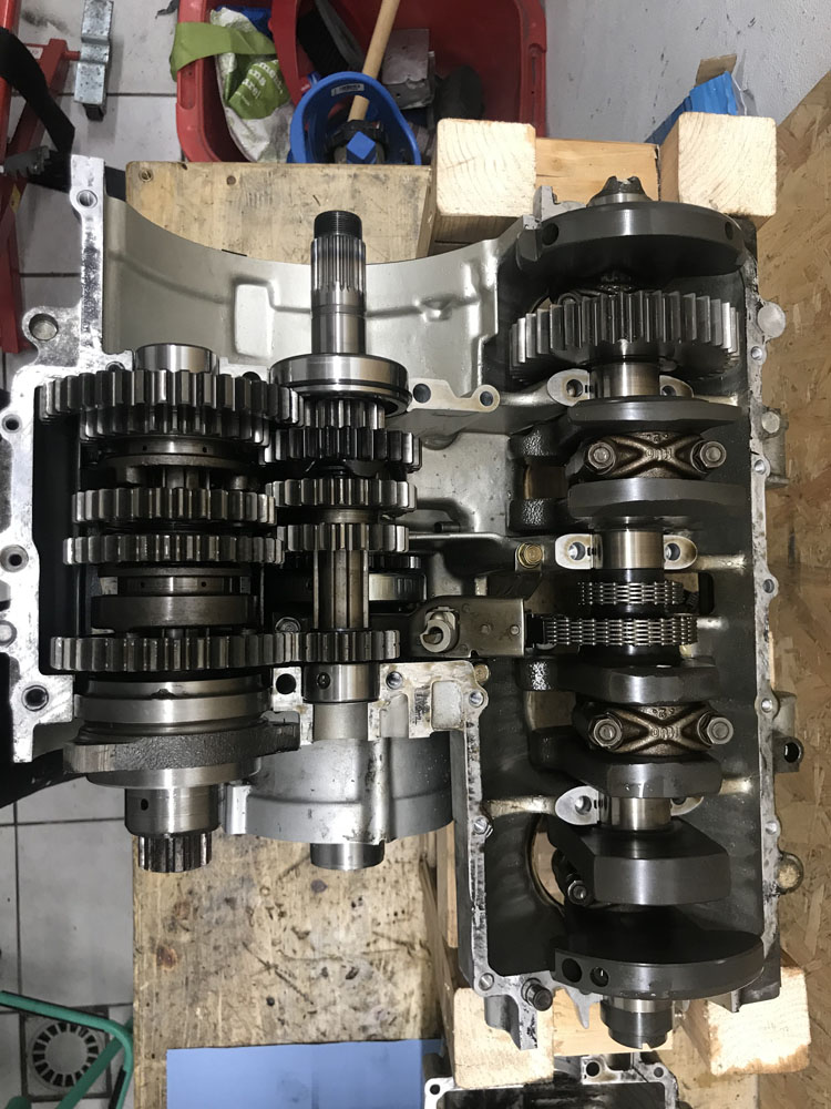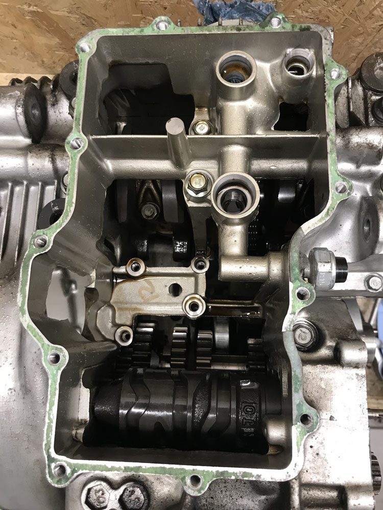 Leitfuedem an Notizen vir den Motoblock vun enger Honda CB 750 vun 1996 auserneen zehuelen. An vun ennen no uewen eng hëlef vir en rem zesummen ze setzen.