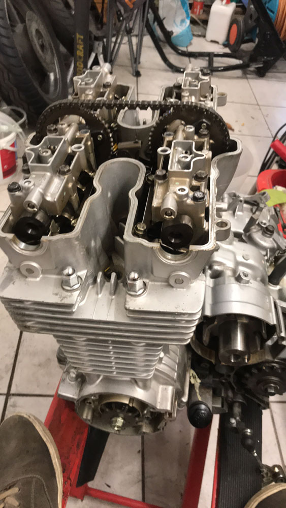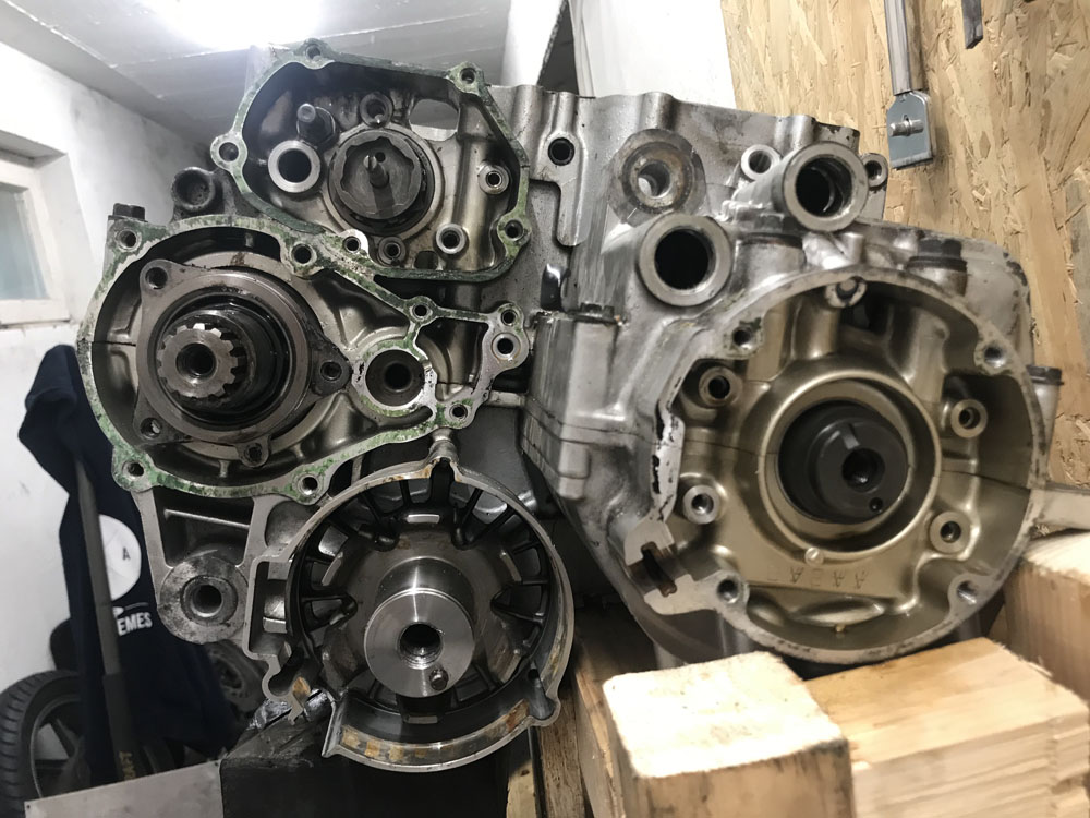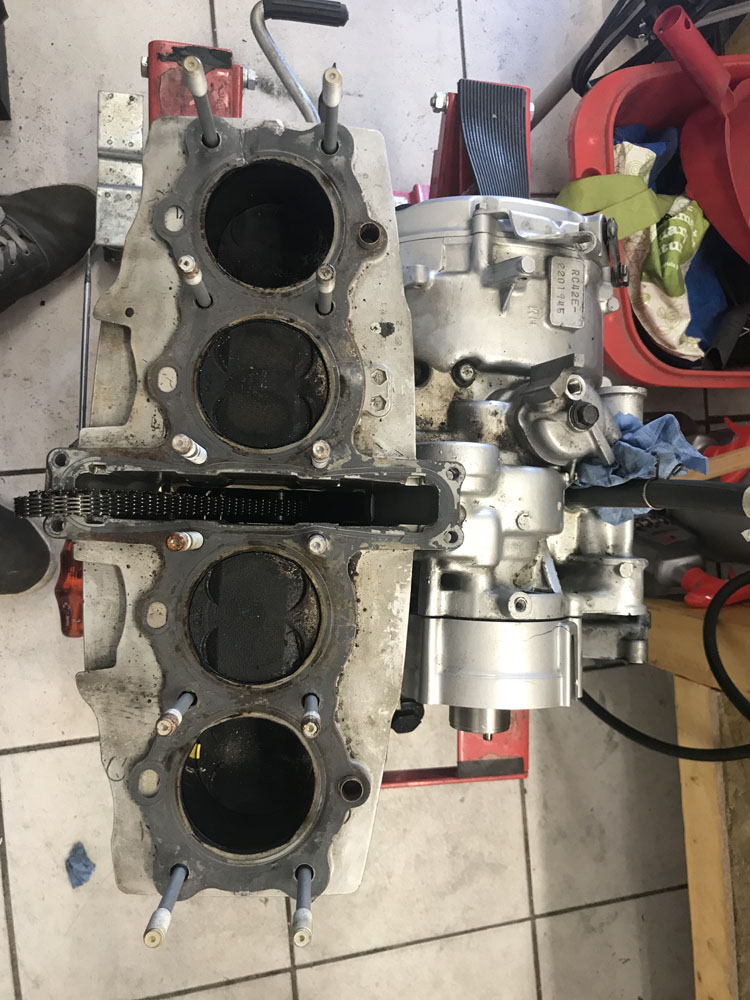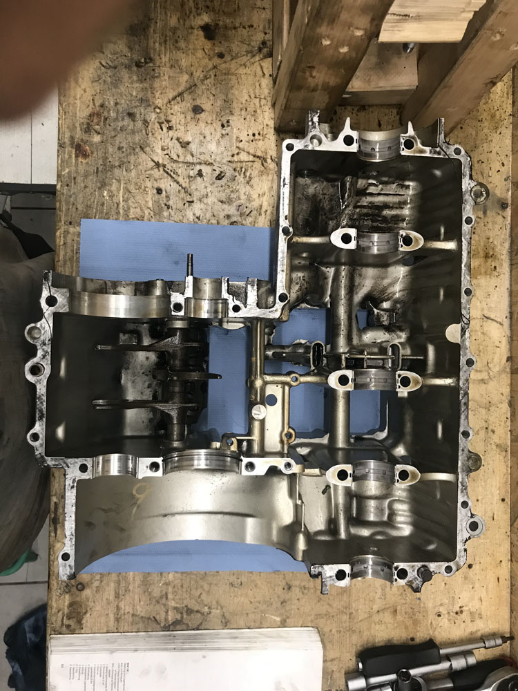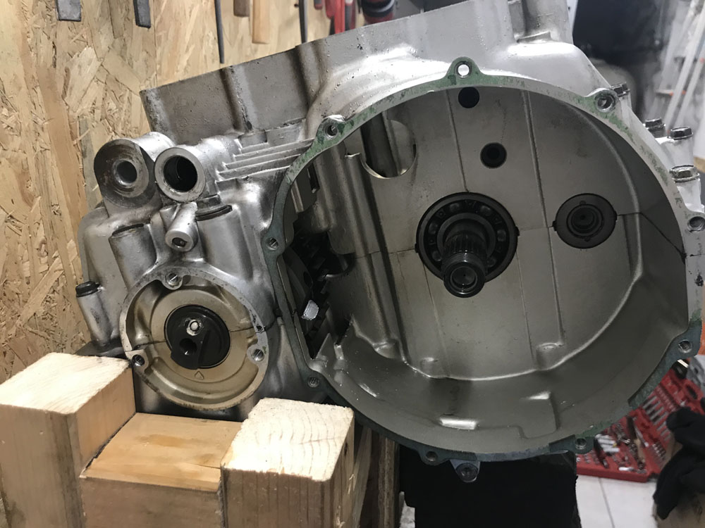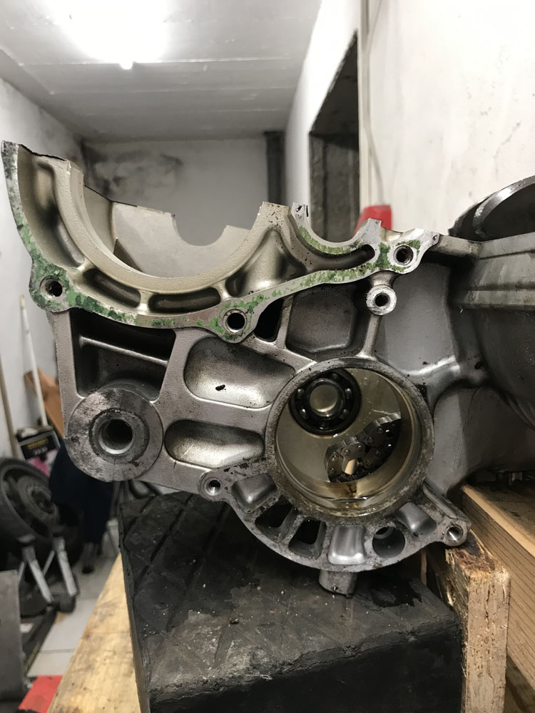 Leitfuedem an Notizen vir den Motoblock vun enger Honda CB 750 vun 1996 auserneen zehuelen. An vun ennen no uewen eng hëlef vir en rem zesummen ze setzen.