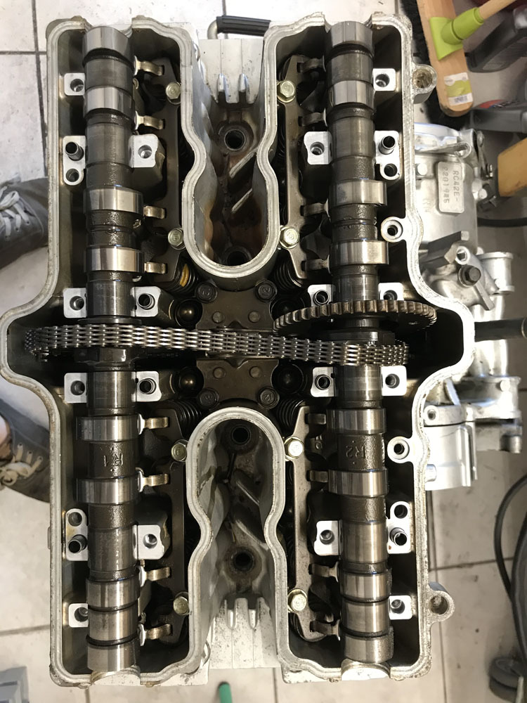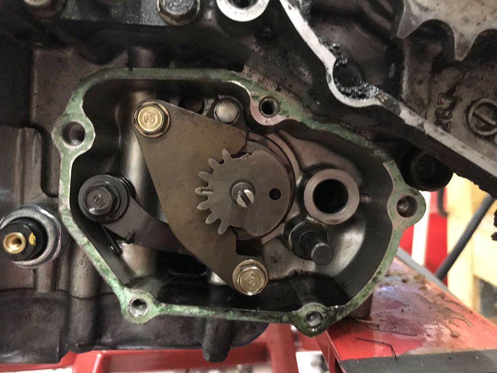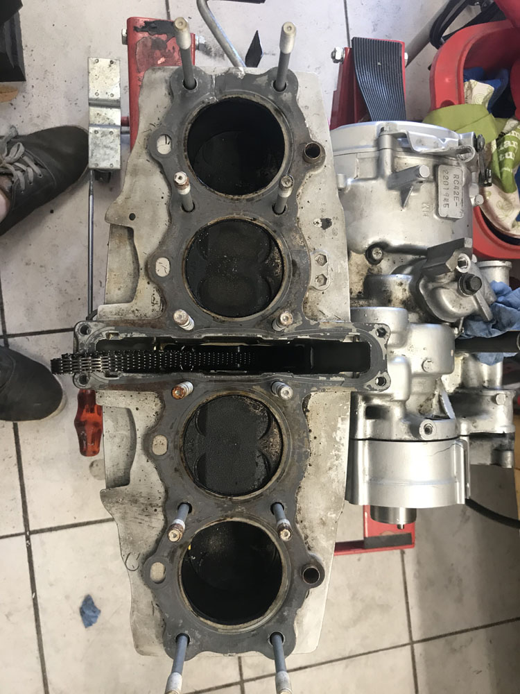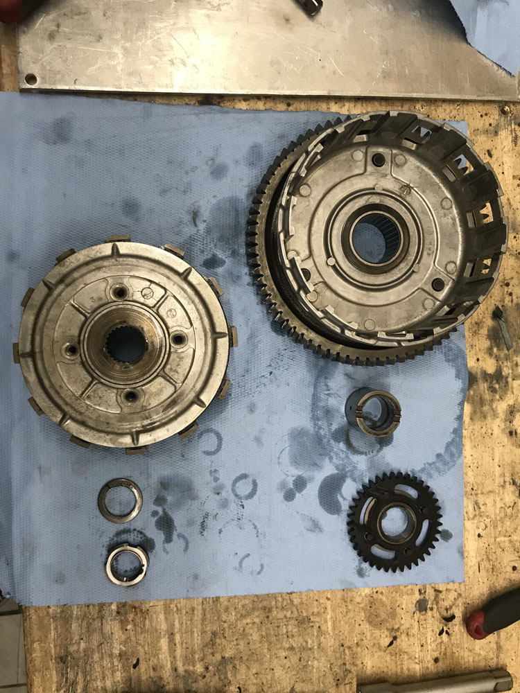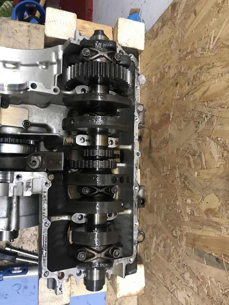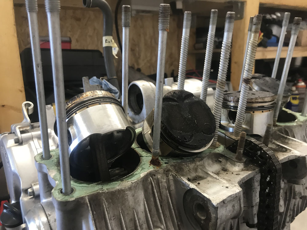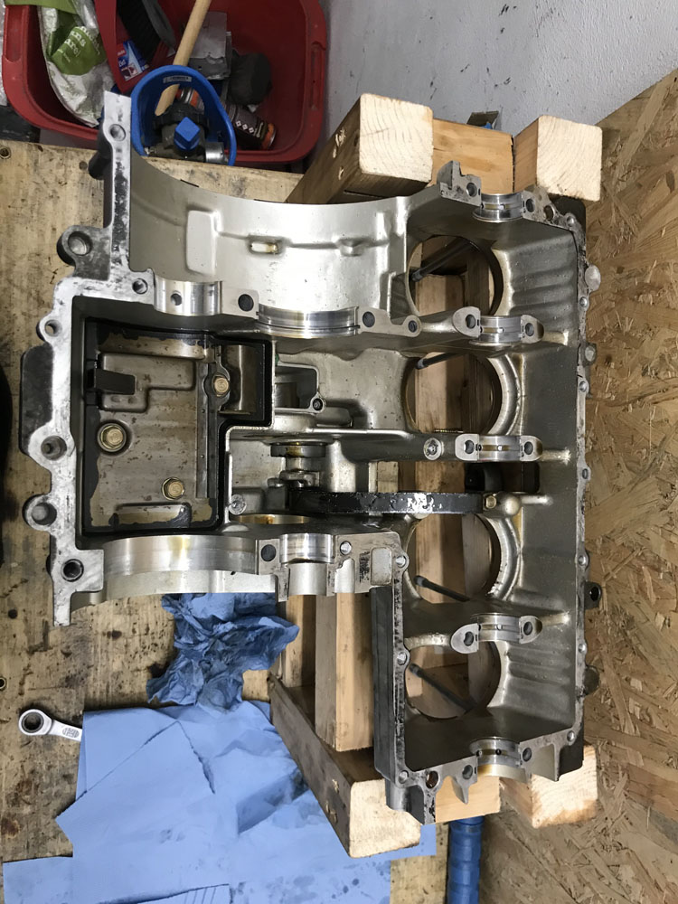 Leitfuedem an Notizen vir den Motoblock vun enger Honda CB 750 vun 1996 auserneen zehuelen. An vun ennen no uewen eng hëlef vir en rem zesummen ze setzen.