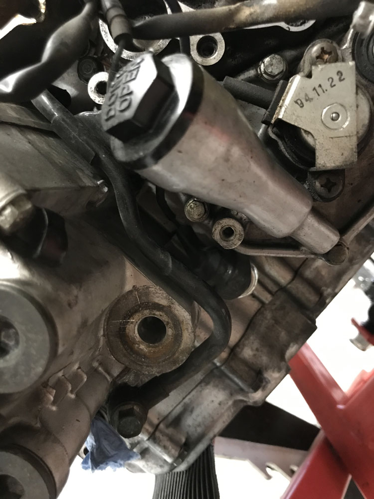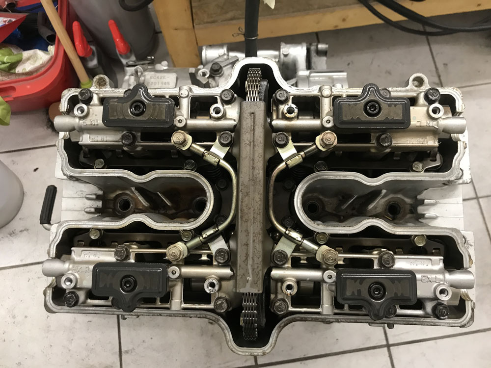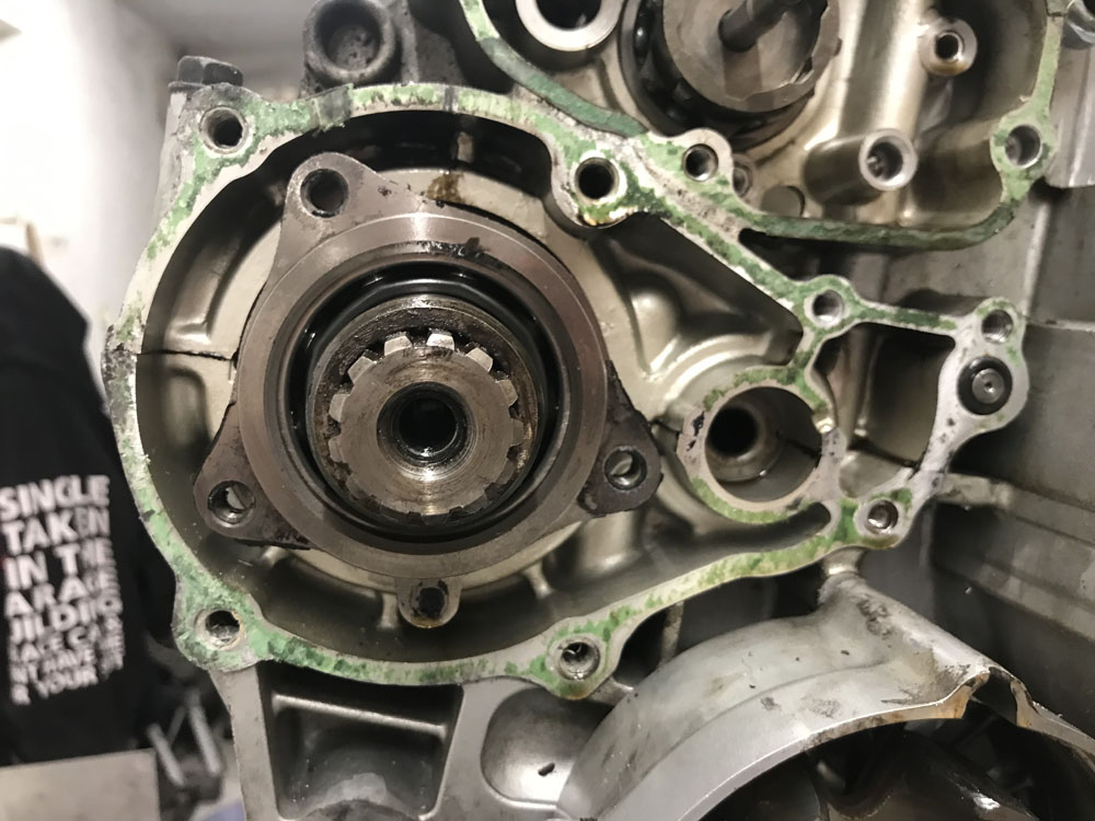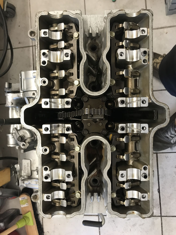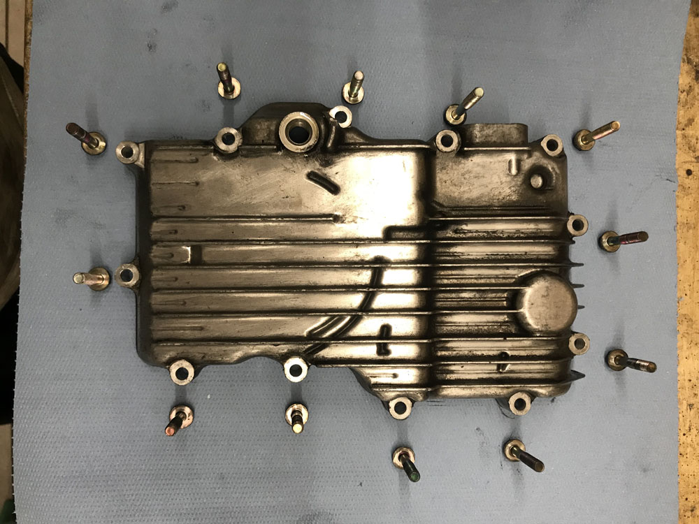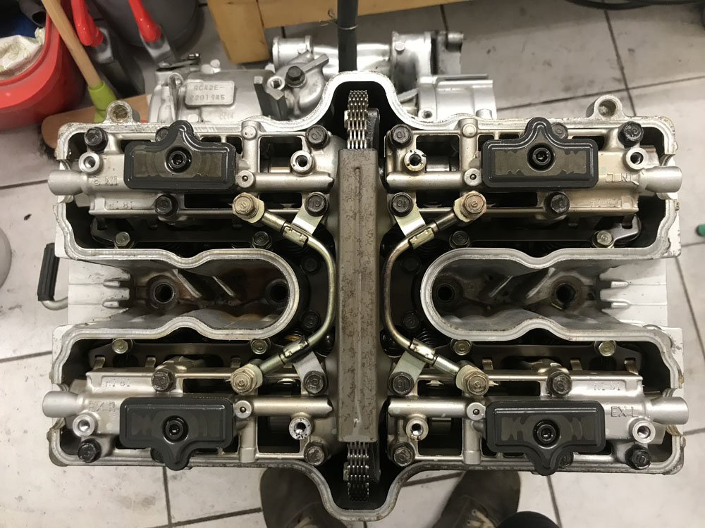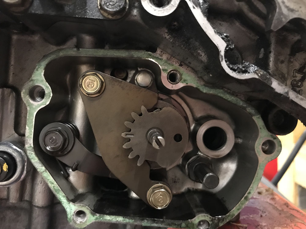 Leitfuedem an Notizen vir den Motoblock vun enger Honda CB 750 vun 1996 auserneen zehuelen. An vun ennen no uewen eng hëlef vir en rem zesummen ze setzen.