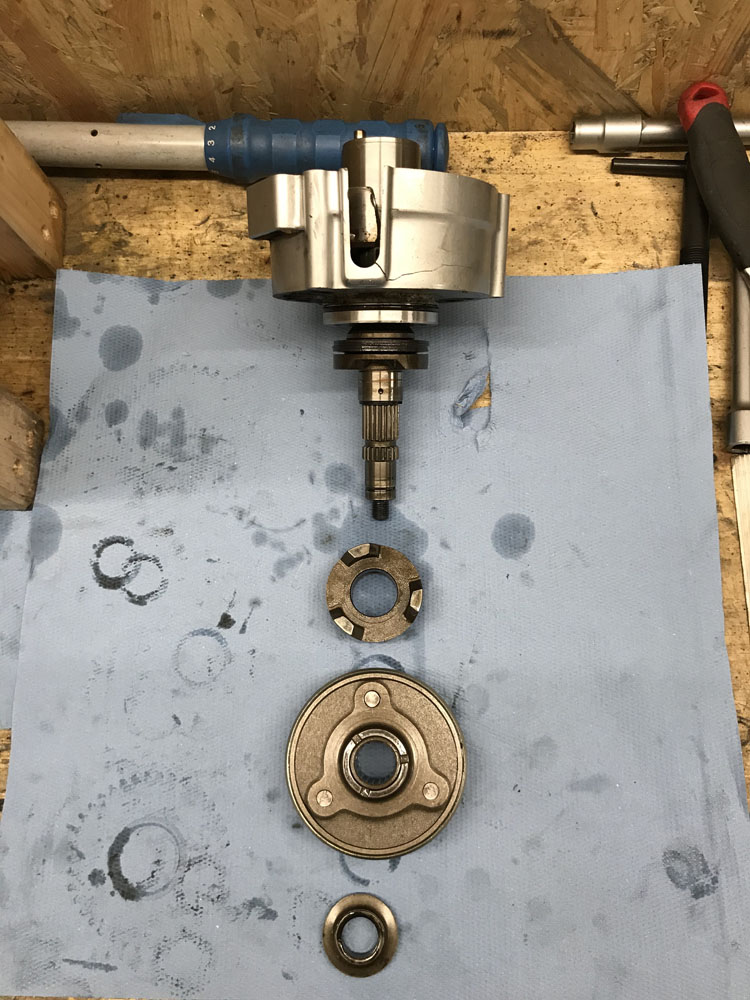 Vun da Schweng Feierungs achse mat den Lageren rauspressen