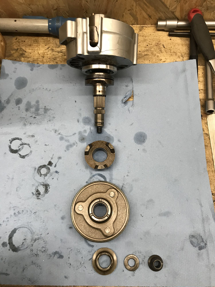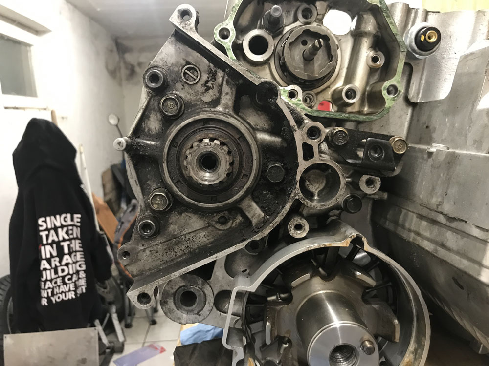 Uelegleitblech an entlefterleitblech lass schrauwen an eroof. D'Lager am Vorlegewelledeckel raus pressen.